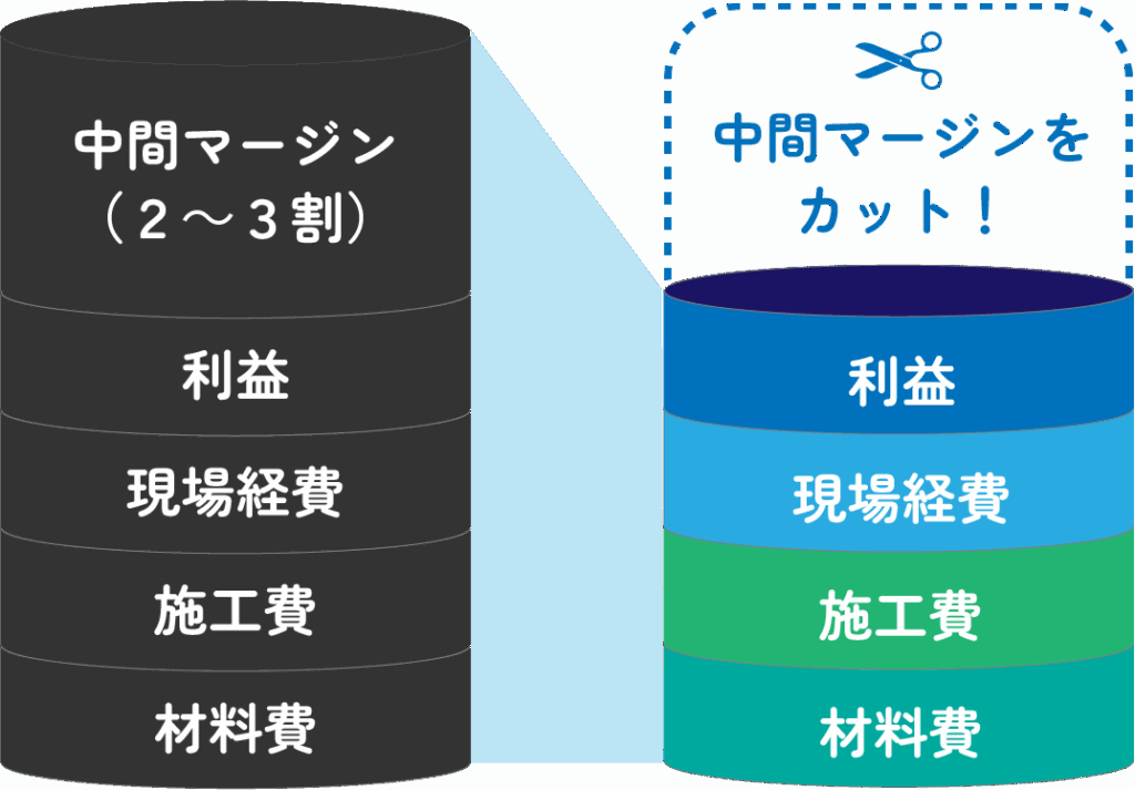 調査から施工、アフターサービスまですべて自社で対応しており、中間業者を介さないため余計なコストがかかりません。さらに、屋根材は独自の仕入れルートを活用して直接調達しており、高品質な施工を低価格でご提供しています。